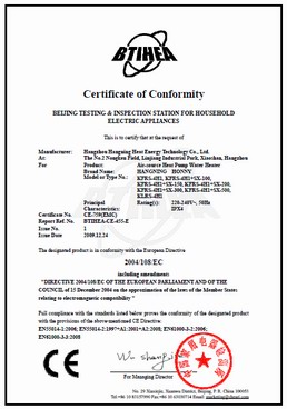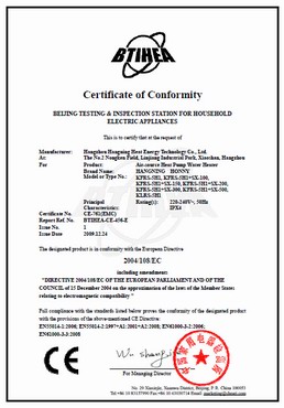 HONNY(杭寧)秉承完備的全面質(zhì)量管理體系,產(chǎn)品陸續(xù)獲得CE認證、CCC認證、韓國冷凍協(xié)會認證、歐盟14511檢測、熱泵三合一專利證書等多項殊榮。
